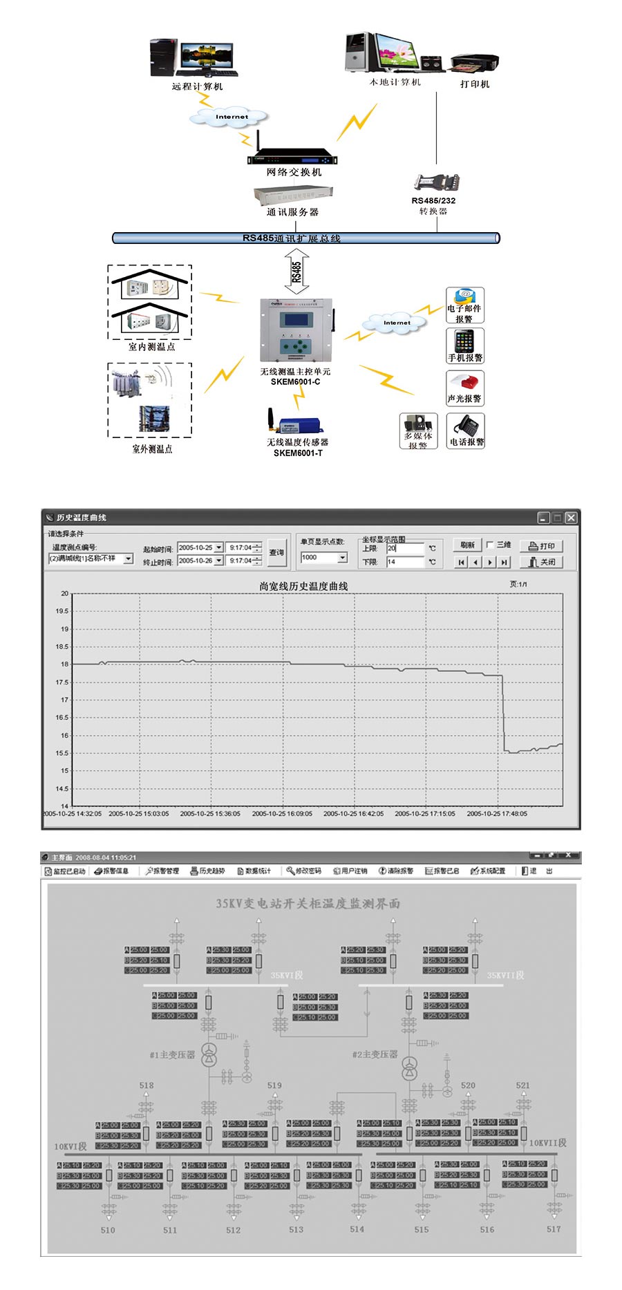 SKEM6001电力温度无线实时监测系统拓扑图: